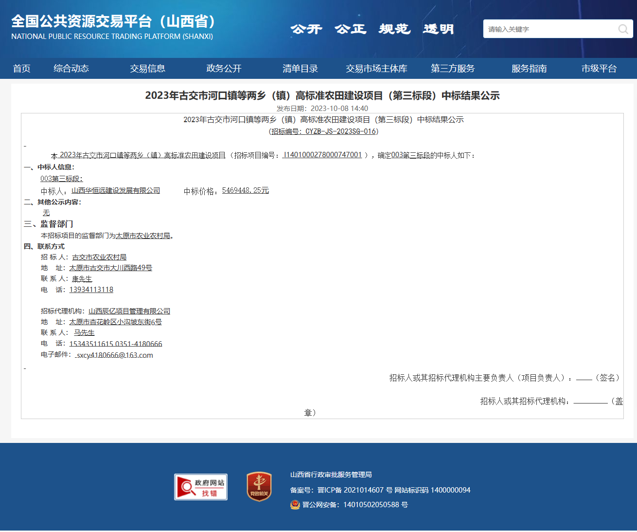 2023古交市河口镇等两乡(镇)高标准农田建设项目(第三标段)